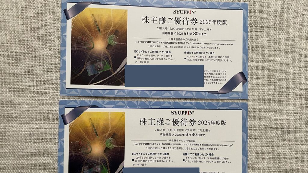 優待券は、商品購入の場合は5,000円割引、売却の場合は5%上乗せされる優待となります。